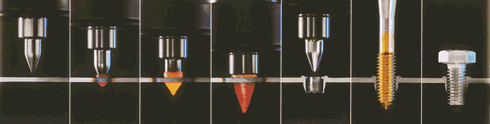 擠壓絲錐:熱熔自動鉆孔機需要用擠壓絲錐(也叫擠牙絲錐),這種絲錐不像靠切削材料的顆粒組織形成螺紋的普通絲錐,而是通過擠壓材料來形成螺紋,所以絲錐使用壽命更長,加工出的螺紋質(zhì)量更高。